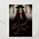 Celebre su graduación con estilo con esta tarjeta de agradecimiento plana de papel de aluminio real que presenta una tipografía de escritura sofisticada que dice con elegancia "Gracias" en la parte frontal. Muestre su foto favorita de su último año para un toque personal que capture el momento perfectamente. La parte trasera incluye espacio para un mensaje totalmente personalizable para expresar su sincero agradecimiento a amigos, familiares y seres queridos. Impreso en cartulina premium con un diseño moderno y elegante, esta tarjeta es una forma atemporal de decir gracias.