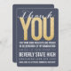 PRECIOSA tipografía moderna de color azul marino con un aspecto y sensación suave y vintage. Agregue su propio texto a la plantilla para crear esta popular y profesional tarjeta de graduación brillante de la clase de 2014. Fondo de papel de color azul cielo con tipografía dorada brillante impresionante. ¡Tarjetas de invitación para fiesta de diseñador de moda de la clase de 2014!
