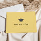 Esta tarjeta de agradecimiento para la graduación de la gorra amarilla de moda es perfecta para una fiesta moderna de graduación. El diseño es sencillo, con una tipografía clásica de color amarillo dorado y negro con un gorra de graduación de acuarela de color negro y dorado. Deje el botón en blanco para escribir a mano un mensaje personal, o tenga un mensaje de agradecimiento y una actualización impresa en la parte posterior.