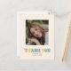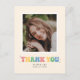 Agradece a amigos y familiares por unirse a tu celebración de graduación con estilo con esta tarjeta de agradecimiento de una sola foto. Cuenta con espacio para una foto sobre las palabras "gracias" escritas en letras de burbuja en colores pastel.