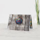 Tarjeta de agradecimiento Evergreen Fall Harvest Barn de 5" x 7". Hermoso granero histórico con vidrieras centenarias que adornan la parte delantera y trasera. Decorado para bodas de otoño/cosecha y diversión en fiestas con amigos y familiares. Un búfalo y un yak están parados a lo lejos. La tarjeta de agradecimiento interior tiene vidrio tintado y madera de granero con un marco para su mensaje. Utilice el mensaje existente o personalice la tarjeta con su propio mensaje y el nombre de su familia o empresa. "¡Gracias!"