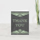 Elegante y moda Deco Chalkboard Gracias tarjeta con un moderno fondo de color de pizarra y un par de bordes de remolinos de arte verde claro. Esta preciosa tarjeta de agradecimiento es perfecta para un boda temático de Art Deco de los años 20. Fácil de personalizar, simplemente añada el texto personalizado de su elección. Haga clic en "Personalizar" para buscar opciones de personalización adicionales.