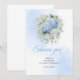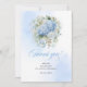 Tarjeta de agradecimiento de boda boho con flores de hortensia azul de acuarela y verde de eucalipto, impresa profesionalmente por Zazzle en papel de alta calidad con detalles nítidos, color rico y acabado elegante suave.