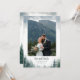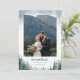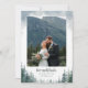 Esta tarjeta de agradecimiento de boda de pino presenta una fuente moderna divertida y ricos árboles de hoja perenne de acuarela contra una página blanca. ¡Agrega tu propia foto!