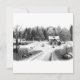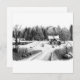 Dibujo a lápiz impreso en lienzo de una antigua casa de campo con un auto viejo. Un viejo camino de tierra conduce a la valla en el patio que desciende hasta un bosque y un prado con estanque cercado por un carril dividido. La imagen está firmada por mí