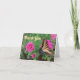 Foto de mariposa de cola tortuosa entre zinnias rosas y ageratum morado.