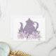 Tarjeta de agradecimiento correspondiente para la colección Time for Tea. Con una tetera de lavanda y flores moradas y rosadas con vegetación de acuarela. Personalice con su información. Haga clic en "hacer clic para personalizar más" para cambiar el estilo, tamaño o color de la fuente.