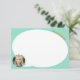 Una tarjeta de notas divertida y fácil de personalizar para que su hija escriba sus propias notas de agradecimiento y correspondencia personal con su familia y amigos, esta tarjeta de notas plana incluye su foto y una gran burbuja de habla en la que escribir. El texto de nombre impreso y personalizado le da un sentido de propiedad, mientras que el sólido patinaje trasero significa que tiene aún más espacio para escribir si se queda al frente. Una combinación tropical verde azulada y jugosa de naranja mantiene estas notas brillantes, divertidas y coloridas.