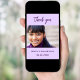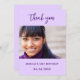 Fondo violeta de color lavanda. Personaliza y agrega tu foto y nota de agradecimiento. Texto púrpura.