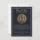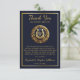 El clásico estilo de los años 90 del ecuestre preppy diseño "Gracias" que incluye un emblema de herradura con cresta de tono dorado con su inicial de monograma. Un marco de tono dorado y un texto de tono dorado acentúan el diseño, y un patrón dorado en la coordinación de los colores precoces completa el aspecto. Diseño por diseños de Holiday Hearts (derechos reservados).