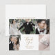 Esta minimalista tarjeta de agradecimiento para planilla de fotografía oro 4 es perfecta para un boda simple. El moderno diseño romántico presenta una tipografía clásica en oro y blanco, acompañada de una caligrafía rústica y elegante con un estilo de letra a mano vintage. Personalizable de cualquier color. Mantenga el diseño simple y elegante, tal como está, o lo personaliza añadiendo sus propios gráficos y obras de arte. Personalice la parte posterior de la tarjeta con sus nombres y un mensaje de agradecimiento. Como alternativa, deje en blanco la sección de plantilla de mensajes de agradecimiento para escribir a mano una nota personalizada en cada tarjeta después de su llegada. Estas tarjetas se pueden usar para un boda, una ducha de novia o cualquier evento especial.