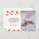 Celebra el primer cumpleaños de tu pequeño con esta encantadora tarjeta de agradecimiento con foto. Expresa tu gratitud con un toque personalizado al agregar una foto especial de la celebración de cumpleaños. Esta tarjeta es perfecta para enviar una nota de agradecimiento sincero a los invitados que hicieron el día aún más especial. El diseño presenta dulces elementos de fiesta de fresas, capturando la esencia de una celebración de cumpleaños de fresa. Di "Gracias" de una manera muy dulce con esta adorable tarjeta de agradecimiento de cumpleaños número 1 de fresa.