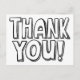 Perfecta para niños, esta tarjeta postal de agradecimiento con letras de bloque ilustradas y dibujadas a mano en simple negro y blanco permite a cualquiera ser el artista y colorear las letras y el fondo para hacer que el arte de escribir una nota de agradecimiento sea un poco más divertido. En la parte posterior, una dirección de remitente personalizada hace que sea aún más fácil escribir y enviar una nota de agradecimiento además del franqueo económico de una tarjeta postal.