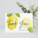 Tarjeta de agradecimiento de limón de acuarela pintada a mano amarilla.
