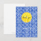 Un simple agradecimiento, presentado con elegancia con una rodaja de limón amarilla fresca sobre un fondo de azulejos azules y blancos.