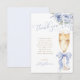 Envía tus agradecimientos sinceros con esta elegante tarjeta de agradecimiento que presenta una escritura elegante y un lazo azul polvoriento suave atado a una copa de champán y flores azules.