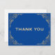 Tarjeta de agradecimiento de marco con brillo azul y dorado. Para una personalización adicional, haga clic en el botón "Personalizar" y use nuestra herramienta de diseño para modificar esta plantilla.