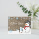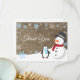 Tarjeta de agradecimiento de Navidad de invierno copo de nieve. Muñeco de nieve y pingüino. Fondo de arpillera. Granero vintage retro campestre. Copo de nieve azul. Amor y gracias, fuente de letra hermosa. Agregue su mensaje en la parte posterior o déjelo en blanco y escriba a mano. Para una personalización adicional, haga clic en el botón "Personalizar" y use nuestra herramienta de diseño para modificar esta plantilla.