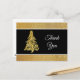 Esta postal elegante presenta una fotografía de un árbol de Navidad dorado texturizado sobre un centro blanco cremoso. El fondo es de brillo dorado lo que hace que esta postal sea elegante. Cómprela como se muestra o personalícela con su propia imagen o saludo.