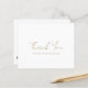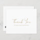 Tarjeta de agradecimiento de negocio falsa dorada moderna económica con un diseño simple y minimalista con "Gracias" en la parte frontal en una tipografía de letra cursiva elegante. La parte trasera tiene su mensaje personal junto con su código QR e íconos de redes sociales. Esta tarjeta de agradecimiento profesional es ideal para cualquier pequeña empresa.