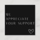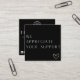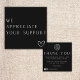 Con un diseño elegante en blanco y negro, estas tarjetas proporcionan espacio para la marca y la firma de su logotipo, creando un aspecto cohesivo y moderno. Perfecto para las pequeñas empresas, permiten expresar gratitud por el servicio al cliente, incluir un mensaje de descuento o invitar a los clientes a conectarse a las redes sociales. Estas tarjetas hacen que sea fácil convertir un simple agradecimiento en un gesto significativo, construyendo lealtad y confianza con cada orden. Cree una experiencia de cliente refinada: personalizar el suyo hoy mismo.