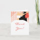 Tarjeta de agradecimiento de novia y novio de moda con una novia y un novio en un fondo floral de coral. ¡Invitaciones para ducha de novia, sellos postales y pegatinas a juego disponibles en nuestra tienda en www.celebrateitinvites.com. También disponible en una gran variedad de colores. ¡Personaliza con tu información y listo! ©Jessica Weible