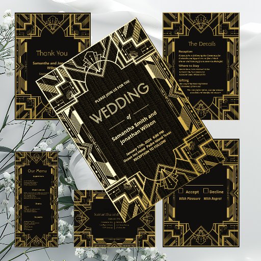 Art Deco Glamorous Gold on Black Foil Wedding FoilDiseñado por Clyde Coles