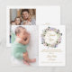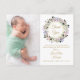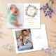 Una tarjeta de agradecimiento de anuncio de nacimiento con guirnalda floral de lavanda decorativa y bonita. Personalice con 2 fotos especiales, mensaje de agradecimiento y agregue el nombre de su bebé y estadísticas de nacimiento. Diseñado por Thisisnotme©