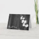 Una tarjeta de agradecimiento que presenta una foto en blanco y negro de orquídeas apoyadas contra un fondo de madera de granero. El texto en la parte frontal dice "Gracias". El interior está en blanco. Esta tarjeta también se puede comprar en tamaño de tarjeta más pequeña. Busque invitaciones de boda y más en Jill's Paperie.