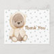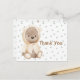 Oso de peluche de acuarela lindo rodeado de un patrón simple de hojas verdes. Tipografía simple de “Gracias” en marrón.