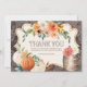 Tarjeta de agradecimiento de otoño con encaje de madera rústica