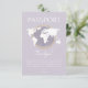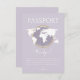 Carné de acción de gracias Baby Shower con tema de viajes Gender Neutral Passport con fondo de lavanda suave, ilustracion de globo con acento dorado y detalles de eventos de personalizable.