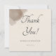 Una moderna tarjeta de agradecimiento minimalista para bodas diseñada para emparejar perfectamente la invitación. Cuenta con un único parche irregular en la esquina superior izquierda con puntos delicados de manchas de tinta descoloridas hacia el exterior, colocado sobre un fondo neutro y limpio. El centro editable proporciona el espacio perfecto para su mensaje de gratitud, manteniendo la disposición elegante y refinada.
