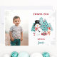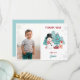 Tarjeta de agradecimiento de cumpleaños de Navidad con un muñeco de nieve, conejo y árbol de Navidad en un bosque nevado para el cumpleaños de Navidad de los niños. Puede personalizar fácilmente todo el texto. Los artículos coincidentes están disponibles en mi tienda. - Kate Eden Art