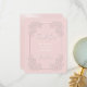 Una tarjeta de agradecimiento con el delicado diseño de la puntiaguda, que me recuerda a encaje. El blanco suave está sobre un fondo rosa pálido (casi melocotón). Es un aspecto femenino de estilo vintage.
