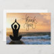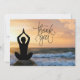 Posición de Yoga Gracias Tarjeta Enviar una tarjeta de agradecimiento de yoga es la manera perfecta de mostrar tu aprecio por alguien que ha hecho algo especial por ti. La hermosa imagen de una mujer practicando yoga al atardecer es la manera perfecta de agradecerte.