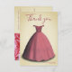Esta tarjeta de agradecimiento de quinceañera al estilo vintage cuenta con un hermoso vestido rojo sobre un fondo beige Vintage y una opción para agregar una foto