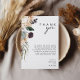 Diseñamos esta tarjeta de agradecimiento de 5" x 7" para recepción con flores blancas para completar tu boda rústica tropical oscura. Con su vegetación acuarela bohemio hasta sus modernas flores de invierno boho, incluyendo protea, dalia y loto seco, el diseño seguramente resaltará tu tema verde y blanco minimalista y melancólico. Cambia el texto y agrega una foto para hacerla tuya. Además, asegúrate de revisar el resto de la colección para encontrar artículos coordinados que unirán toda tu boda. https://www.zazzle.com/collections/white_floral_collection-119896729923706651