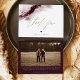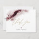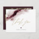 Esta tarjeta de agradecimiento incluye una salpicadura de color rojo burdeos merlot y letra manuscrita dudosa. Esta tarjeta es perfecta para su moderno boda bohemio del desierto, ducha de bebé, ducha de novia o cualquier otro evento. Añade fácilmente un mensaje especial en la parte de atrás y cambia la foto por su toque único.
