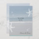 Tarjeta de agradecimiento a Ocean Beach. Las estrellas de mar decoran esta vista costera para que las personas se lo agraden o para cualquier evento. La parte frontal tiene una línea de plantilla para agregar nombres y revertir le permite al personalizar con un mensaje personal, o borrar el texto para dejarlo en blanco. Pequeñas tarjetas planas vienen con sobres blancos.