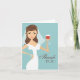 Las tarjetas de agradecimiento coordinadas son perfectas para nuestras invitaciones de Despedida de Soltera a juego. La hermosa novia de ojos marrones y cabello oscuro brinda con sus amigos y familiares con un vaso de vino tinto en este diseño moderno para una novia amante del vino o un evento con tema de vino. Fondo suave turquesa y texto marrón castaño.