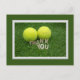Tarjeta de agradecimiento de tenis con dos pelotas sobre verde