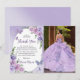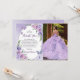 Tarjeta de agradecimiento de corona floral morada de Quinceañera