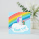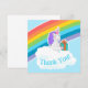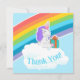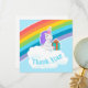 Di gracias de una manera mágica con esta adorable tarjeta de agradecimiento cuadrada que presenta a un dulce unicornio sosteniendo un regalo contra un suave cielo de arcoíris. La ilustración juguetona y colorida crea una sensación cálida y alegre que es perfecta para cumpleaños de niños, baby showers, favores de fiesta y notas de agradecimiento cotidianas alegres.