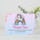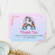 Di “gracias” con brillo y encanto usando esta Tarjeta de agradecimiento de Unicornio. Con un fondo de arcoíris pastel suave, estrellas doradas y un unicornio sonriente, es el complemento perfecto para tu invitación de cumpleaños de unicornio. Totalmente personalizable con el nombre y mensaje de tu hijo. Ideal para cumpleaños de niñas y celebraciones caprichosas