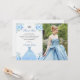 Tarjeta de agradecimiento de vestido floral azul plata Quinceanera