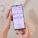 Un fondo violeta, decorado con purpurinas falsos, chispas. Guión con letras a mano grande con barras y el texto: Gracias. Personalice y agregue su nota de agradecimiento y nombre.