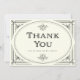 Esta elegante tarjeta de agradecimiento presenta un moderno giro en el art deco clásico. Un marco geométrico y ornamentado ornamentado con negro decoran un elegante fondo de marfil para una espectacular boda vintage. La parte posterior está en blanco para que pueda escribir su propio mensaje.