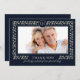 Elegante azul marino | Tarjetas de agradecimiento de fotos de aniversario de boda con diseño de marco botánico de papel de plata. Invitaciones, favores y regalos de fiesta de aniversario a juego disponibles en la categoría Aniversario de boda de nuestra tienda.