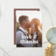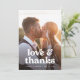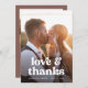 Esta es una tarjeta de agradecimiento boda bohemio usando un tipo de letra retro vintage junto con un diseño fotográfico moderno y simple. El reverso incluye una segunda foto y un mensaje de agradecimiento que puede personalizar. Cambie fácilmente los colores, el texto y las fotos según sea necesario. Póngase en contacto con el diseñador para cualquier consulta relacionada con este diseño.
